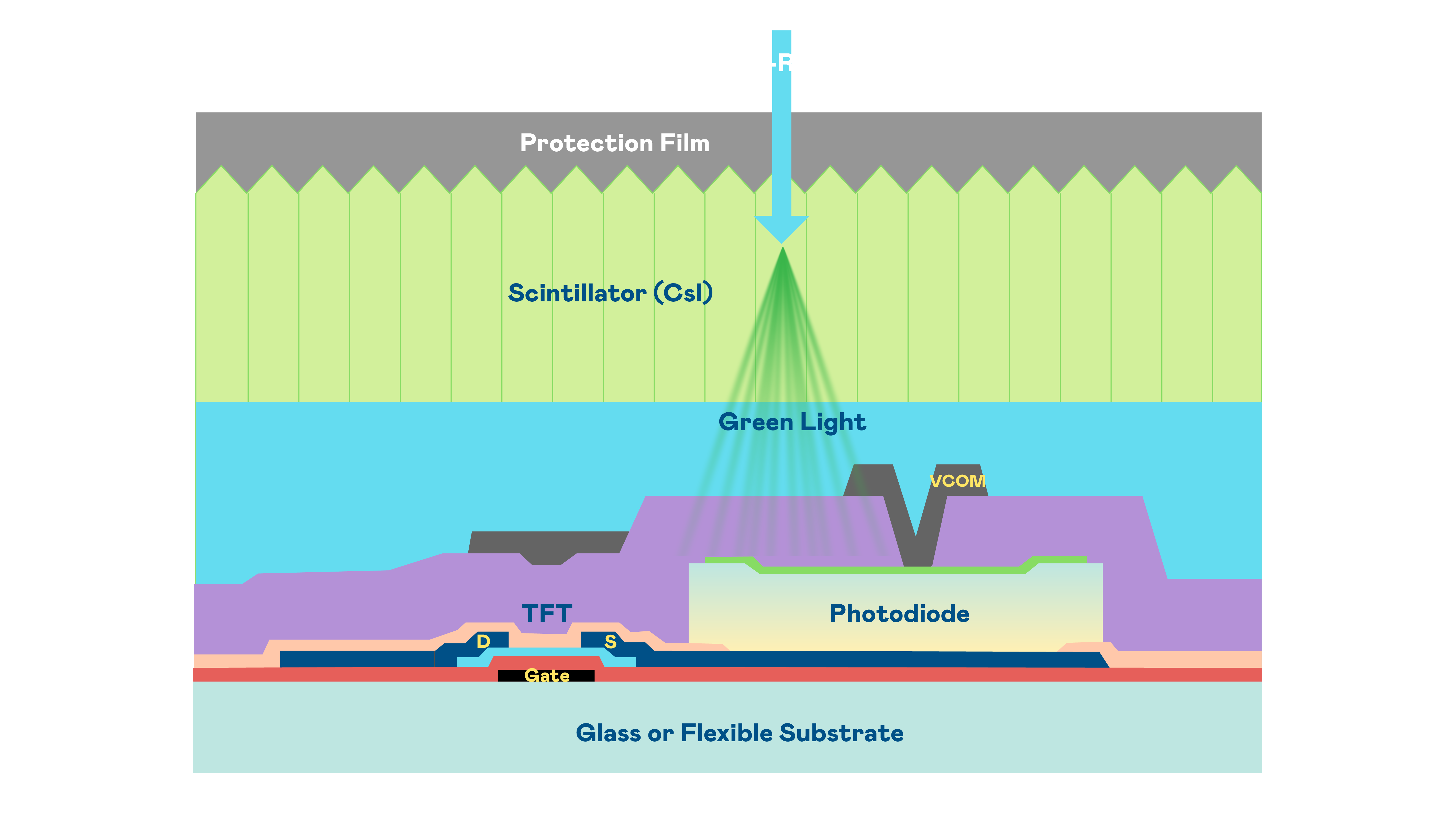 德扑之星的X光影像感測陣列使用薄膜電晶體 (TFT) 作為每個像素的讀取開關,搭配光電二極體(Photodiode)的光電轉換元件,用以感測X光影像訊號。